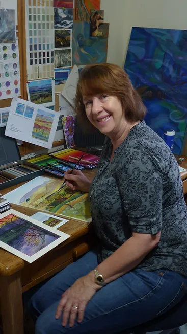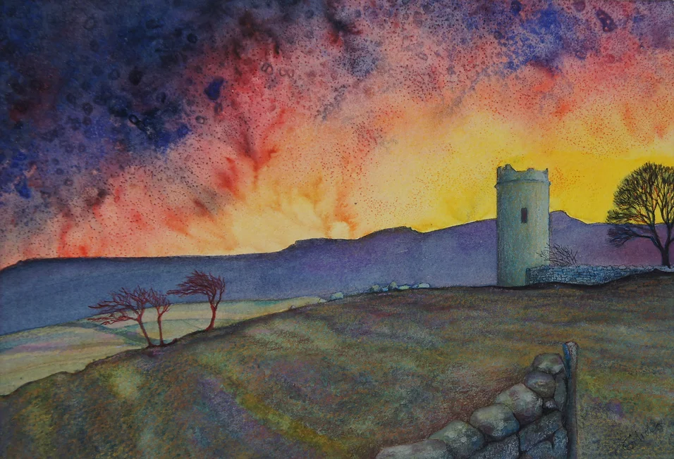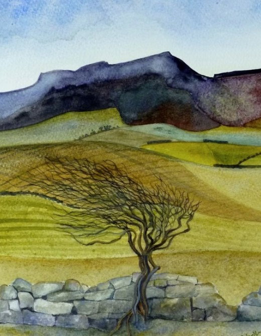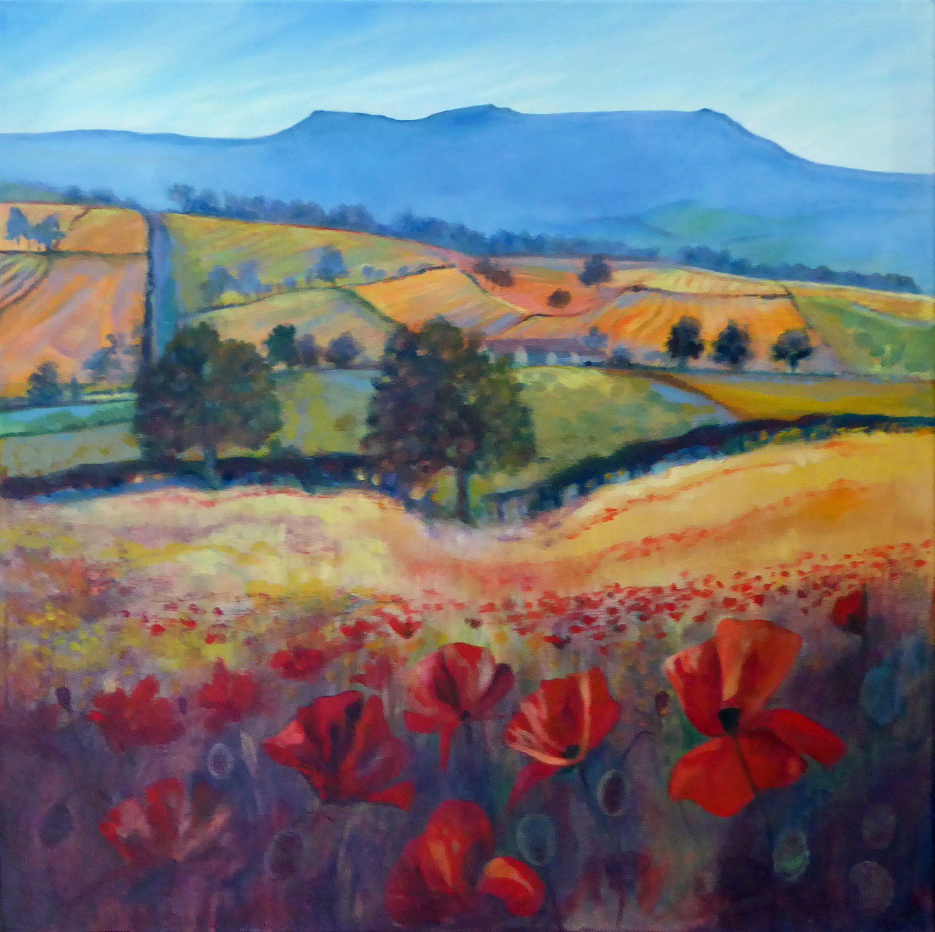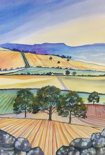 I am drawn to her many images of the Simonside hills, painted from different angles. Elidh tells me about her fascination with the work of the Japanese artist, Hokusai. She says “When I found out that he had produced dozens of versions of Mount Fiji, it seemed to validate my own desire, or should I say 'obsession', to paint Simonside so often. Derek would say, 'not yet another picture of Simonside!'. I can now reply, well, it worked well for Hokusai!”.