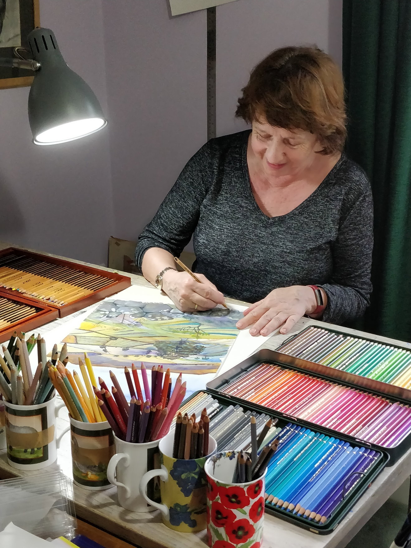 A practical person, Elidh makes her own mounts and frames. Besides being a full-time artist, she also plays the flute and performs with Alnwick Symphonic Wind Ensemble and the Alnwick Playhouse Concert Band.
