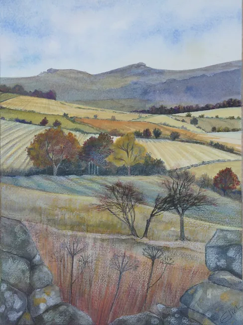 I first came across Elidh after noticing a rather beautiful painting on the the cover of Over the Bridges. It was a view of Simonside. I loved it.