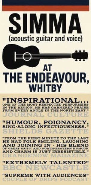Known for his dynamic live presence, he has released a number of albums and EPs, collaborated with legendary acts like Lindisfarne, and continues to be a vibrant force in venues and festivals across the north of England and Scotland. As much as his songs, Simma's stories of gigs both good and bad are worth hearing!